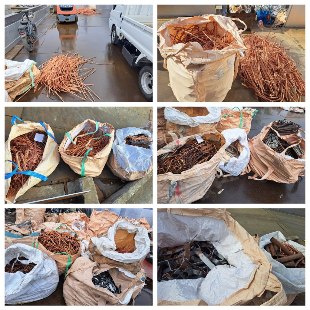 主要3品目(ピカ・銅・80%電線)計:約7.6t、真鍮:約1.5t、VA・雑線等:約4.1t、鉄:約50t、給湯器及び特上雑品:約12.8t 、アルミ及びステンレス:約2.2t etc