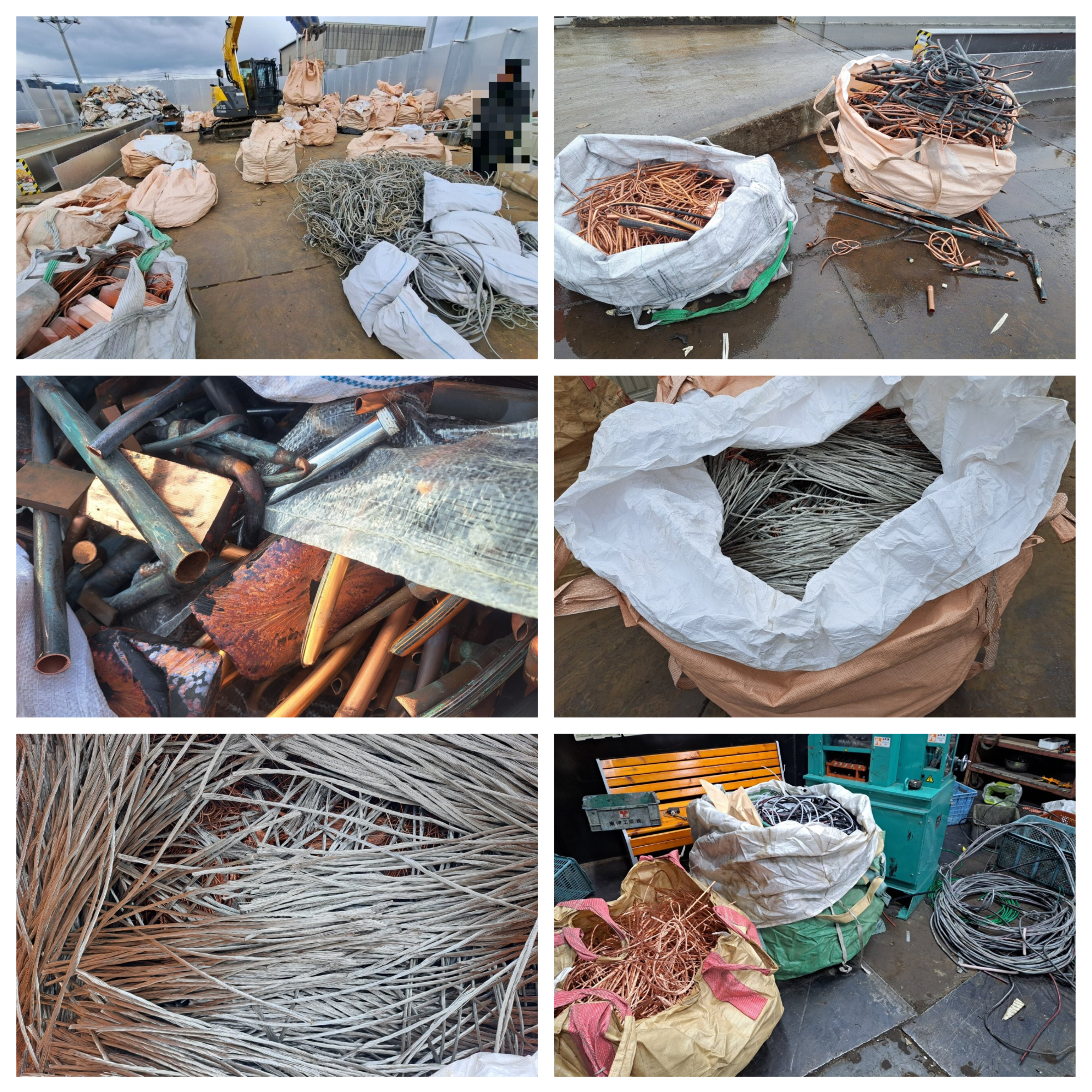 主要3品目(ピカ・銅・80%電線)計:約10.7t、真鍮:約2.2t、VA・雑線等:約11.8t、鉄:約35.4t、給湯器及び特上雑品:約11.7t 、アルミ及びステンレス:約3.7t etc